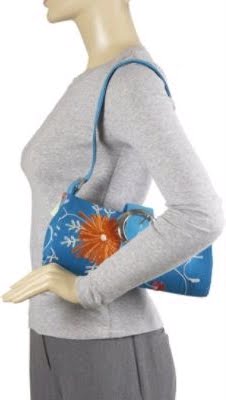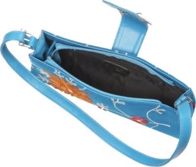 Beautiful embriodered flower on this simple East West silhouette handbag